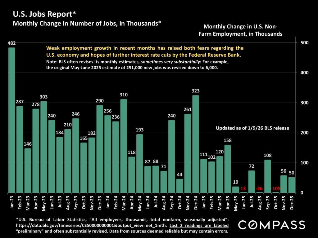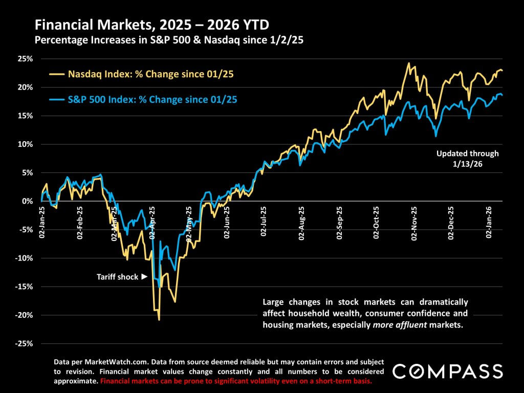 Reviewing economic indicators, the 2 biggest in 2025 were interest rates, which, falling dramatically since summer, are now close to multi-year lows, and stock markets, which are at or close to historic highs. The first has a huge impact on affordability, and the second on household wealth.