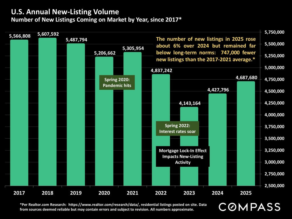 The number of new listings coming on market in 2025 increased about 6% in 2025. The “mortgage lock-in effect” – the reluctance of owners with low interest rate mortgages to sell – has continued to fade, a very positive development.