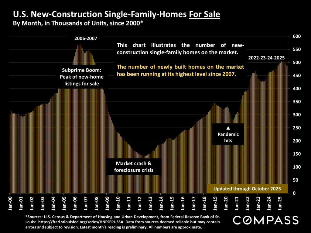 In some markets, especially in the south and southwest, the supply of existing homes for sale has been dramatically supplemented by the number of new-construction homes on the market.