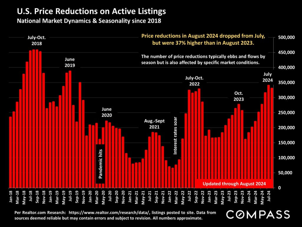 The number of price reductions ticked down in August from July, but is generally running higher than at any time since the effect of soaring interest rates in 2022.
